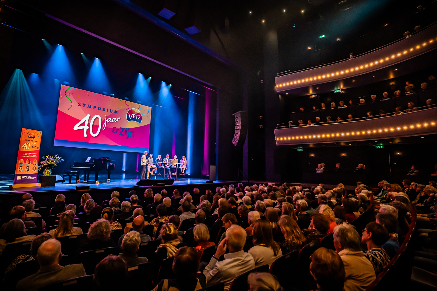 Op 19 november vond in theater Flint in Amersfoort het symposium ’40 jaar Er Zijn’ plaats. Met meer dan 700 aanwezigen was het een bijzondere viering van veertig jaar Vrijwilligers Palliatieve Terminale Zorg (VPTZ) Nederland. De feestelijke bijeenkomst bracht VPTZ-vertegenwoordigers – waaronder vele vrijwilligers – en professionals in zorg en welzijn samen om stil te staan bij de waarde van ‘Er Zijn’ in de laatste levensfase. Zijne Majesteit de Koning was aanwezig en voerde gesprekken met vrijwilligers, daarmee hun maatschappelijk belangrijke rol in de palliatieve terminale zorg onderstrepend. Als tastbaar symbool van de waarde van ‘Er Zijn’ reikte een van de vrijwilligers de Koning het gelijknamige beeldje uit, een speciale onderscheiding binnen het werkveld van VPTZ Nederland.