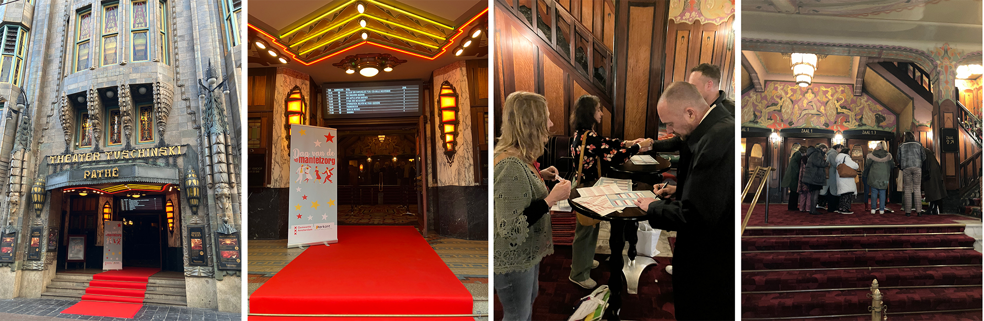 De rode loper lag uit. De VIP-room klaar voor ontvangst. Zondagmiddag in Amsterdam Centrum. Tientallen mantelzorgers druppelen Theater Tuschinski binnen om zich aan te melden voor de film in het kader van de Dag van de mantelzorg. Even eruit. Even de zinnen verzetten. Het was een geslaagde middag. Na een vers bakkie koffie, een fraai stukje taart en een hartelijk welkomstwoord van Markant, namen de mantelzorgers en hun dates plaats in de prachtig gerestaureerde filmzaal. De film? Een hap-slik-weg komedie van Nederlandse bodem: Augurk aan zee. Niet voor iedereen, wel gezellig voor allemaal.
