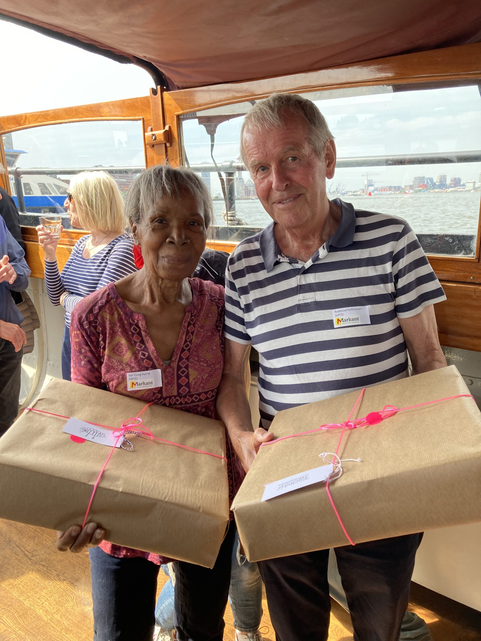 We hebben de jubilarissen die aanwezig waren in het zonnetje gezet. Twee vrijwilligers zijn al 20 jaar bij ons en hebben een mooie schaal ontvangen van Bijzonder Amsterdams.